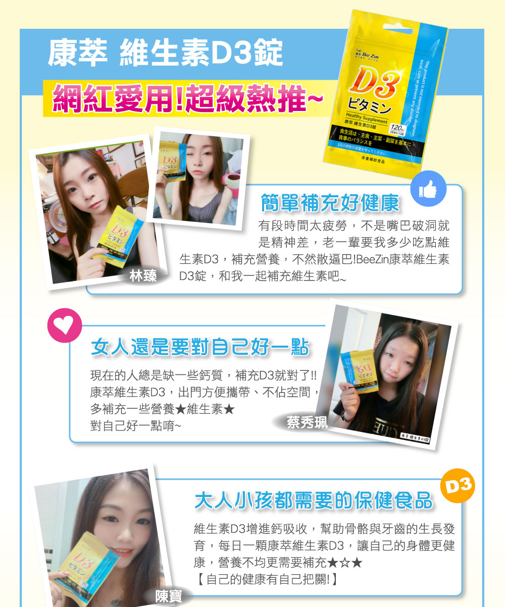 【 商 品 品 名】【BeeZin康萃】 維生素D3錠